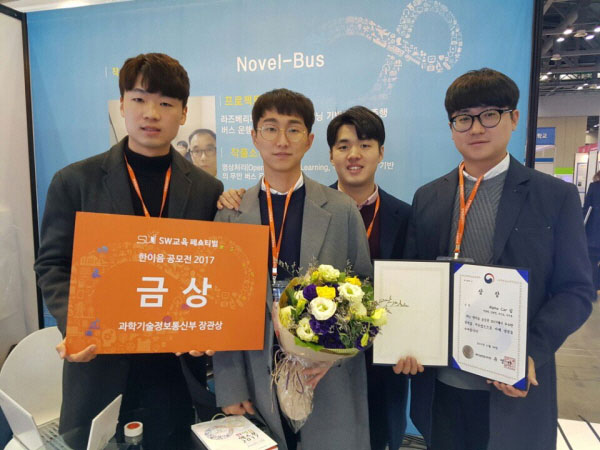 (´º½ºÅë½Å= ±è»ó¼· ±âÀÚ)ÀÎÇÏ´ë Á¤º¸Åë½Å°øÇаú ÇлýÆÀÀÌ ¡®2017 ÇÑÀÌÀ½ ¿¢½ºÆ÷¡¯°ø¸ðÀü¿¡¼ µö·¯´×À» ±â¹ÝÀ¸·Î ÇÏ´Â ÀÚÀ²ÁÖÇà ¹ö½º¿îÇà ½Ã½ºÅÛÀ» Á¦¾ÈÇØ ±Ý»óÀ» ¼ö»óÇß´Ù.