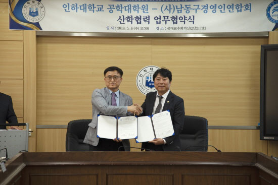 ÀÎÇÏ´ë °øÇдëÇпø(¿øÀå Á¶³²Èñ)°ú (»ç)³²µ¿±¸°æ¿µÀο¬ÇÕȸ(ȸÀå ±è¿µ¸ñ)´Â 8ÀÏ ±³¼öȸÀǽǿ¡¼ ¡®»êÇÐÇù·Â ¾÷¹«Çù¾à½Ä¡¯À» °³ÃÖÇß´Ù.