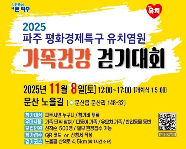 ÆÄÁֽð¡ ÁÖÃÖÇÏ°í ÆÄÁÖ½Ã¹ÎÆ÷·³ÀÌ ÁÖ°üÇÏ´Â À̹ø Çà»ç´Â ±è°æÀÏ ÆÄÁÖ½ÃÀå°ú ½Ã¹Î ¾à 500¸íÀÌ Âü¼®, ¹®»êõ ³ëÀ»±æÀ» µû¶ó ¾à 4.5kmÀÇ ±¸°£À» °È´Â´Ù.