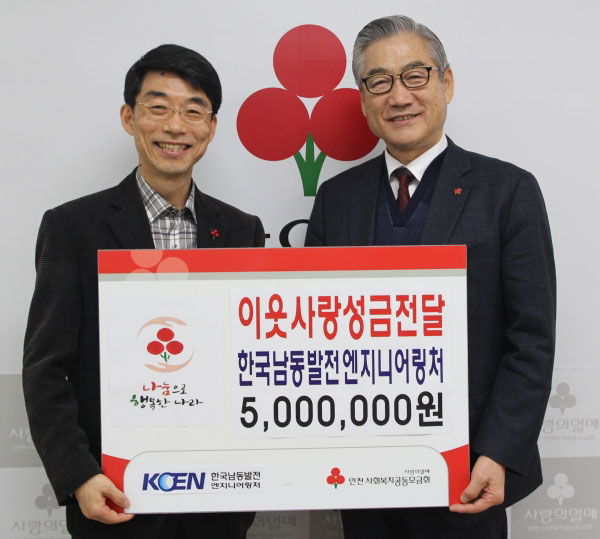 Çѱ¹³²µ¿¹ßÀü ¿£Áö´Ï¾î¸µÃ³ 5¹é¸¸¿ø ¼º±ÝÀü´Þ,¿ÞÂÊ ÀÓÅà Çѱ¹³²µ¿¹ßÀü ¿£Áö´Ï¾î¸µÃ³ óÀå, ¿À¸¥ÂÊ Á¤¸íȯ ÀÎõ»çȸº¹Áö°øµ¿¸ð±Ýȸ ȸÀå