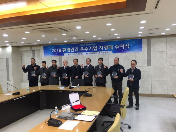 (´º½ºÅë½Å= ±è»ó¼· ±âÀÚ)ÀÎõ½Ã´Â 19ÀÏ ÁßȸÀǽǿ¡¼ ȯ°æ°ü¸® ¸ð¹üÀû ±â¾÷ 8°÷À» ÁöÁ¤Çϰí 2018³â ȯ°æ°ü¸® ¿ì¼ö±â¾÷ ÁöÁ¤ÆÐ¸¦ ¼ö¿©Çß´Ù.