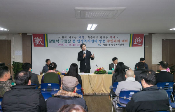À̾î, ¼®³²1µ¿ ÇàÁ¤º¹Áö¼¾ÅÍ·Î À̵¿ÇØ Áֹεé°ú ¸¶ÁÖÇϰí Áö³ÇØ °ÇÀÇ»çÇ׿¡ ´ëÇÑ ±×µ¿¾È ÃßÁø»óȲ ¼³¸í°ú ¿ÃÇØ ÁֹεéÀÌ ±¸Á¤¿¡ ¹Ù¶ó´Â Èñ¸Á»çÇ׿¡ ±Í¸¦ ±â¿ï¿´´Ù.