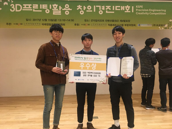 (´º½ºÅë½Å= ±è»ó¼· ±âÀÚ)ÀÎÇÏ´ë ±â°è°øÇаú 3Çгâ À̵¿±Ù, ÇÏ´ë¹Î, ¹ÚÀ¯¼º ÇлýÀÌ Áö³ÇØ 12¿ù 15ÀÏ Çѱ¹Á¤¹Ð°øÇÐȸ¿¡¼ ÁÖÃÖÇÏ´Â ¡®3DÇÁ¸°ÆÃ Ȱ¿ë âÀÇ °æÁø´ëȸ¡¯¿¡¼ ¿ì¼ö»óÀ» ¼ö»óÇß´Ù.