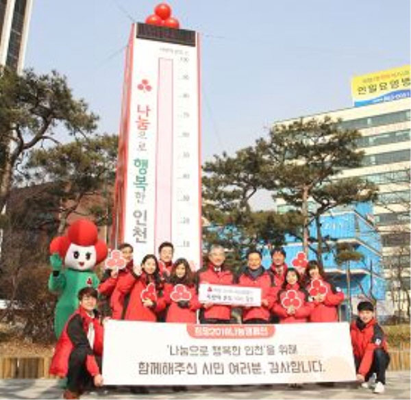 (´º½ºÅë½Å= ±è»ó¼· ±âÀÚ)ÀÎõ»çȸº¹Áö°øµ¿¸ð±Ýȸ(ȸÀå Á¤¸íȯ)ÀÇ ¿¬¸»¿¬½Ã ÀÌ¿ôµ½±â ¸ð±Ý½ÇÀûÀ» ³ªÅ¸³»´Â ¡®»ç¶ûÀÇ ¿Âµµ¡¯°¡ 100µµ¸¦ µ¹ÆÄÇß´Ù.