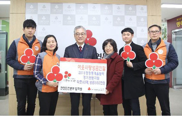 (´º½ºÅë½Å= ±è»ó¼· ±âÀÚ)ÀÎõ»çȸº¹Áö°øµ¿¸ð±Ýȸ(ȸÀå Á¤¸íȯ)´Â 1ÀÏ ÇÑÀü ÀÎõÁö¿ªº»ºÎ(º»ºÎÀå ÀÓû¿ø)·ÎºÎÅÍ 2018³â Æòâ µ¿°è¿Ã¸²ÇÈ °æ±â°ü¶÷±Ç°ú ÀÌ¿ôµ½±â¼º±Ý 550¸¸¿øÀ» Àü´Þ¹Þ¾Ò´Ù.