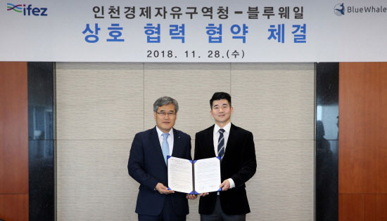 À̳¯ ±èÁø¿ë ûÀå°ú ºí·ç¿þÀÏ ÀÌ¿øÈ« ´ëÇ¥ µî °ü°èÀÚµéÀÌ Âü¼®ÇØ Ã¼°áÇÑ Çù¾àÀº IFEZ(ÀÎõ°æÁ¦ÀÚÀ¯±¸¿ª)°¡ ºí·ÏüÀÎ Çãºêµµ½Ã·Î µµ¾àÇϴµ¥ Àû±Ø Çù·ÂŰ·Î ÇÑ °ÍÀÌ´Ù.