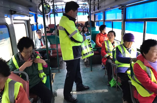 ÇØ³²¼´Â 11ÀÏ ÇØ³²À¾ ÀüÅë½ÃÀå À峯À» ¸Â¾Æ ÇØ³²À¾³»·Î À̵¿ÇÏ´Â °ü³» ¹ö½º¿¡ ±³Åë°æÂû°üÀÌ ½ÂÂ÷ÇØ ¹ö½º¸¦ ÀÌ¿ëÇÏ´Â ³ëÀÎ º¸ÇàÀڵ鿡°Ô ±³Åë»ç°í ¿¹¹æ È«º¸È°µ¿ ¹× »ç°í¿¹¹æ ¾ÈÀüÁ¶³¢¸¦ ¹èºÎÇß´Ù°í ¹àÇû´Ù.