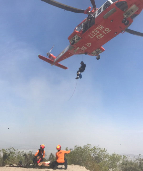 (´º½ºÅë½Å=¹®¼ºÃ¶ ±âÀÚ) 119±¸Á¶´ë¿øµéÀÌ »ê¾Ç»ç°í ºÎ»óÀÚ¸¦ ½Å¼ÓÈ÷ ±¸Á¶, ¼ÒÁßÇÑ »ý¸íÀ» ±¸Çß´Ù.