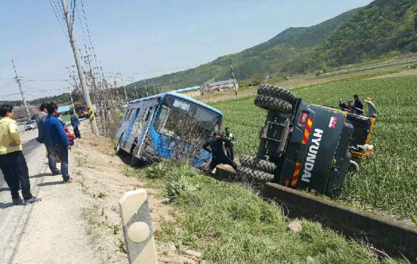 ƯÈ÷ ½Ã³»¹ö½º°¡ ÁøÇà¹æÇâ ÁÂÃø ³ó·Î(¹è¼ö·Î)¿¡ Àüº¹µÇ¸é¼ ž½Â°´ 6¸íÀÌ ºÎ»ó(°æ»ó)À» ÀÔ¾ú´Ù. Ã⵿ÇÑ ±¸Á¶´ë¿øµéÀÌ ±¸Á¶Àåºñ¸¦ ÀÌ¿ë, ¾ÈÀüÇÏ°Ô ±¸Á¶ÇÑ ÈÄ Àα٠º´¿øÀ¸·Î À̼ÛÇß´Ù.