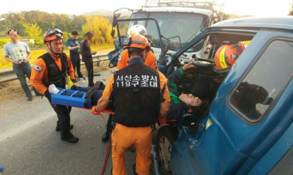 ´ë¿øµéÀº ½Å¼ÓÇÑ ÆÇ´ÜÀ¸·Î ÈÞ´ë¿ë À¯¾ÐÀåºñ µîÀ» ÀÌ¿ëÇØ Â÷·® ¹®À» °³¹æÇÏ°í ±äôÃß°íÁ¤ÆÇÀ» ÀÌ¿ëÇØ A¾¾¸¦ ¾ÈÀüÇÏ°Ô ±¸Á¶Çß´Ù. ÀÌ »ç°í·Î A¾¾´Â ¿ÞÂÊ Á¤°ÀÌ»À °ñÀý µî ¾çÂÊ ´Ù¸®¿¡ ºÎ»óÀ» ÀÔ¾ú´Ù.