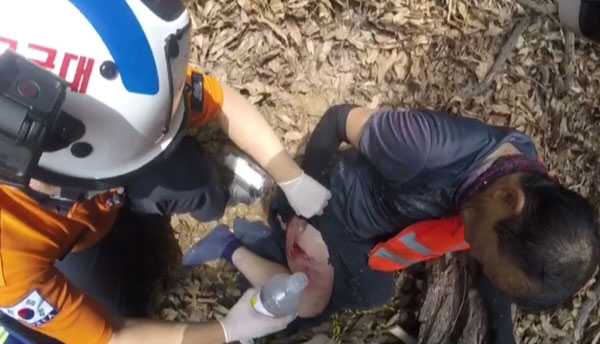 (´º½ºÅë½Å=ÃÖŹü ±âÀÚ) 119±¸Á¶´ë¿øµéÀÌ ¹ú¸ñ ÀÛ¾÷À» ÇÏ´Ù ºÎ»óÀ» ÀÔÀº 50´ë Àκθ¦ ½Å¼Ó½Ã±¸Á¶, ¼ÒÁßÇÑ »ý¸íÀ» ±¸Çß´Ù.