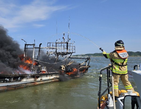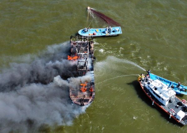 (´º½ºÅë½Å=¹®Âù½Ä ±âÀÚ) 17ÀÏ ¿ÀÈÄ 2½Ã 23ºÐ²² ÀåÇ×Ç× Àαٿ¡¼ ¾î¼± AÈ£(¹«µî·Ï ¾î¼±)¿¡ ¿øÀÎÀ» ¾Ë ¼ö ¾ø´Â ÈÀç°¡ ¹ß»ý, ÇØ°æ¿¡ ÀÇÇØ ÁøÈµÆ´Ù. À̳¯ ÈÀç ½Å°í¸¦ ¹ÞÀº º¸·ÉÇØ¾ç°æÂû¼´Â °æºñÇÔÁ¤, ±¸Á¶´ë, ¹æÁ¦Á¤, ÀåÇס¤È«¿øÆÄÃâ¼Ò ¿¬¾È±¸Á¶Á¤À» ±ÞÆÄ, ÁøÈ ÀÛ¾÷À» ¹ú¿´´Ù. ÈÀç ¹ß»ý ´ç½Ã ½Â¼± ÁßÀÎ ¼±¿øÀº ¾ø´Â °ÍÀ¸·Î Á¶»çµÆ´Ù.