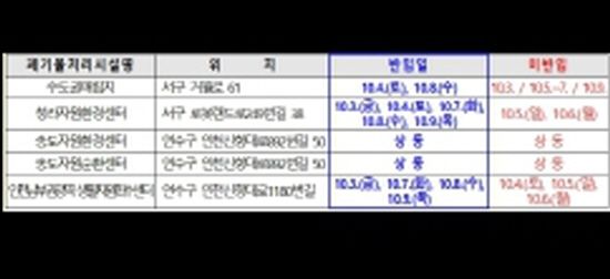 (´º½ºÅë½Å=±è»ó¼· ±âÀÚ) ÀÎõ½Ã´Â Ãß¼®¿¬ÈޱⰣ ±¤¿ªÆó±â¹°Ã³¸®½Ã¼³ ¹ÝÀÔÀÏÁ¤Á¶Á¤¡¤»óȲ½Ç¿î¿µÀ¸·Î ºÒÆíÃÖ¼ÒÈ ÇÑ´Ù.