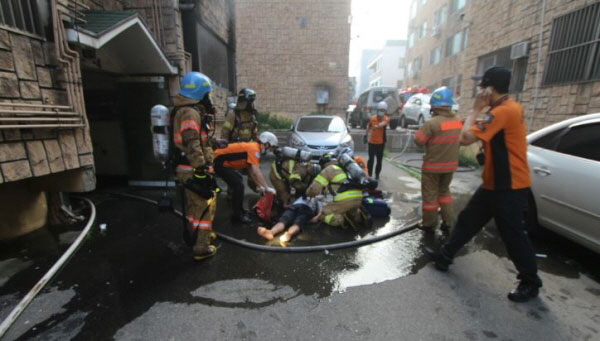 (´º½ºÅë½Å=¹®È¿°æ ±âÀÚ) ¼Ò¹æ´ë¿øµéÀÌ ´Ù¼¼´ëÁÖÅà ÈÀ縦 ½Å¼ÓÈ÷ ÁøÈ, ´õ Å« ÇÇÇØ¸¦ ¸·¾Ò´Ù.