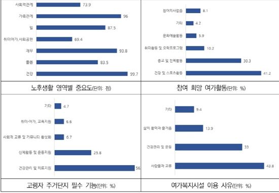 ³ë³â±â »ýȰ¿¡¼ °¡Àå Áß¿äÇÑ ¿µ¿ªÀº °Ç°(99.7Á¡)À¸·Î, °Ç° ¹× °Ç°°ü¸®¿¡ ´ëÇÑ ÁßÀå³âÀÇ °ü½ÉÀÌ ³ô°Ô ³ªÅ¸³´Ù.