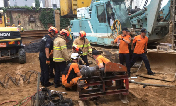 (´º½ºÅë½Å=±è»ó¼· ±âÀÚ) 119±¸Á¶´ë¿øµéÀÌ º¥µù±â°è¿¡ ´Ù¸®°¡ °¨±ä ºÎ»óÀÚ¸¦ ½Å¼ÓÈ÷ ±¸Á¶, ¼ÒÁßÇÑ »ý¸íÀ» ±¸Çß´Ù.