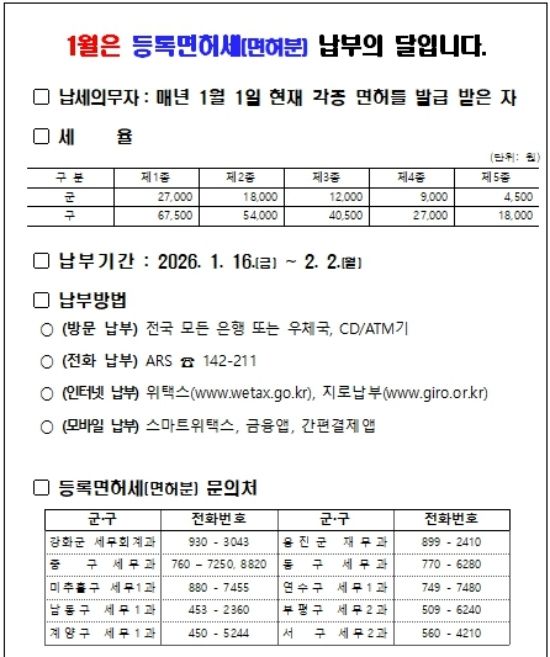 (´º½ºÅë½Å=±è»ó¼· ±âÀÚ) ÀÎõ½Ã°¡ 2026³âµµ Á¤±âºÐ µî·Ï¸éÇã¼¼¸¦ ºÎ°úÇϰí i-½º¸¶Æ® ³³ºÎ¾Ë¸² ¼ºñ½ºµµ Á¦½ÃÇß´Ù.