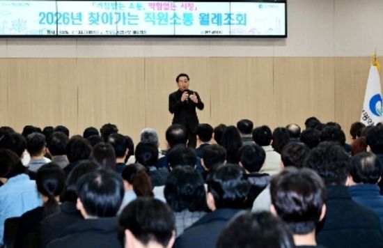 À¯Á¤º¹ ÀÎõ½ÃÀåÀÌ »ó¼öµµ»ç¾÷º»ºÎ°¡Áø '2026³â ã¾Æ°¡´Â Á÷¿ø¼ÒÅë ¿ù·ÊÁ¶È¸'¿¡¼ Á¤Ã¥¹æÇâ Æ¯°À» Çϰí ÀÖ´Ù.(»çÁø= ÀÎõ½Ã Á¦°ø)