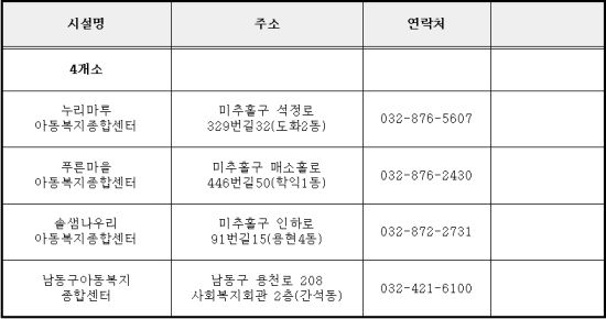 ÀÎõ½Ã ¾Æµ¿º¹ÁöÁ¾ÇÕ¼¾ÅÍ ÇöȲ.(»çÁø= ÀÎõ½Ã Á¦°ø)