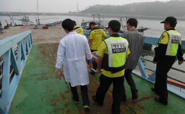 ÀÌ¿¡ µû¶ó ¼øÂûÂ÷¿Í °æºñÇÔÁ¤À» ÀÌ¿ë, À§µµ¿¡¼ °ÝÆ÷Ç×À¸·Î ÈļÛ, °ÝÆ÷Ç׿¡¼ ´ë±â ÁßÀÎ 119 ÀÀ±ÞÂ÷·®À» ÀÌ¿ë, ºÎ¾È¼º¸ðº´¿øÀ¸·Î ½Å¼ÓÇÏ°Ô ÈÄ¼Û Ä¡·á ÁßÀÌ´Ù.