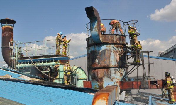 (´º½ºÅë½Å=¹®È¿°æ ±âÀÚ) 119¼Ò¹æ´ë¿øµéÀÌ ³¿ºñ Á¦Á¶°øÀå ÈÀ縦 ½Å¼ÓÈ÷ ÁøÈ, ´ëÇü ÈÀ縦 ¸·¾Ò´Ù.