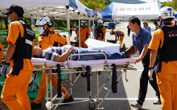 ÈÆ·Ã¿¡´Â °æÂû, º¸°Ç¼Ò, º´¿ø, ±ººÎ´ë µî ÃÑ 9°³ ±â°ü°ú ´Üü°¡ Âü°¡Çϰí Àοø 152¸í, Àåºñ 14´ë°¡ µ¿¿øµÈ °¡¿îµ¥ °í¼Óµµ·Î¿¡¼ ¹ö½º ±³Åë»ç°í·Î ´Ù¼ö »ç»óÀÚ°¡ ¹ß»ýÇÑ »óȲÀ» °¡Á¤Çß´Ù.